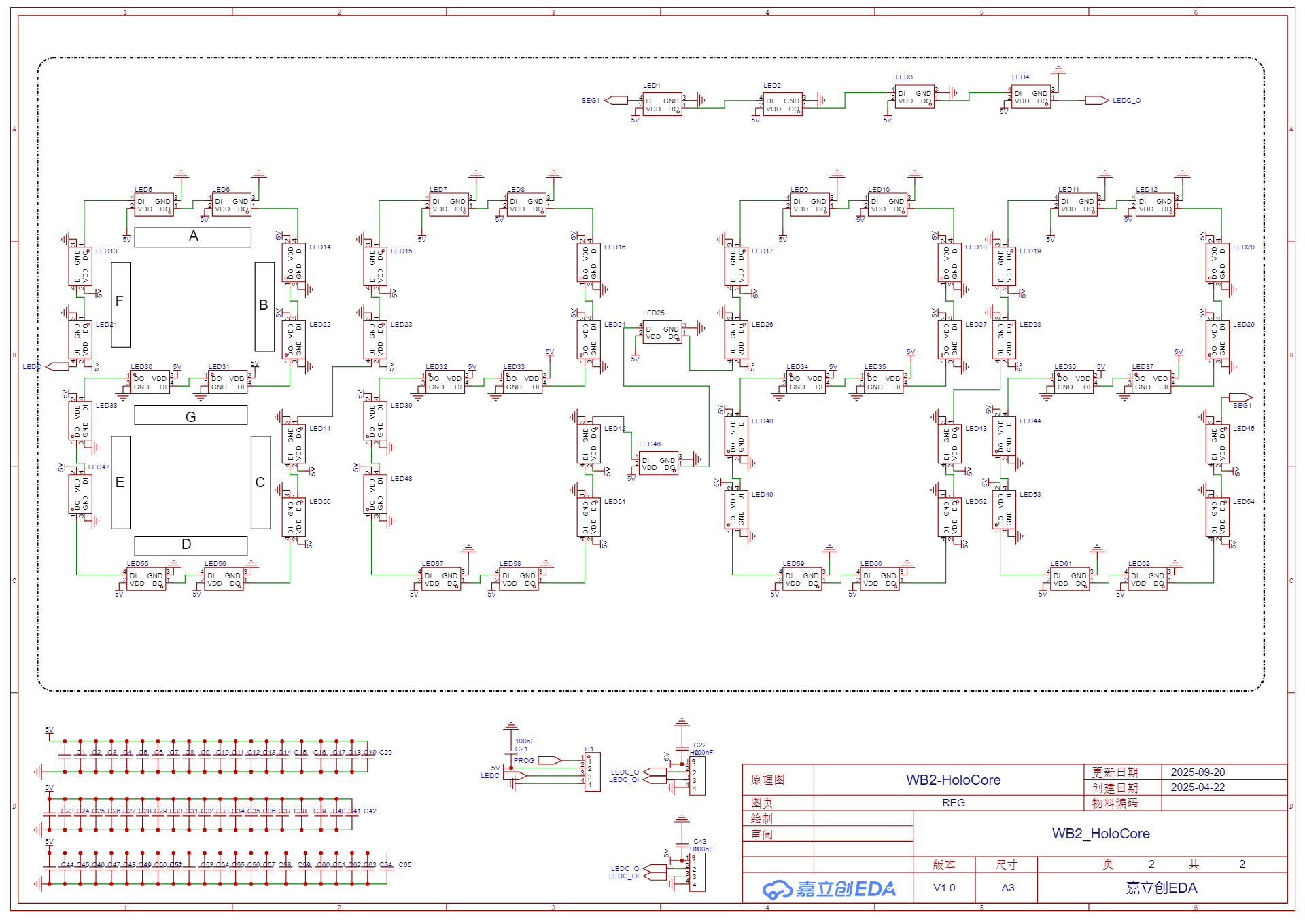 WB2-HoloCore 本质上是一个物联网时钟,不同于之前的数码管显示方案,WB2-HoloCore采用 WS2812 灯珠组成了全彩的数码管。因此它能够展现非常好看的炫彩效果。